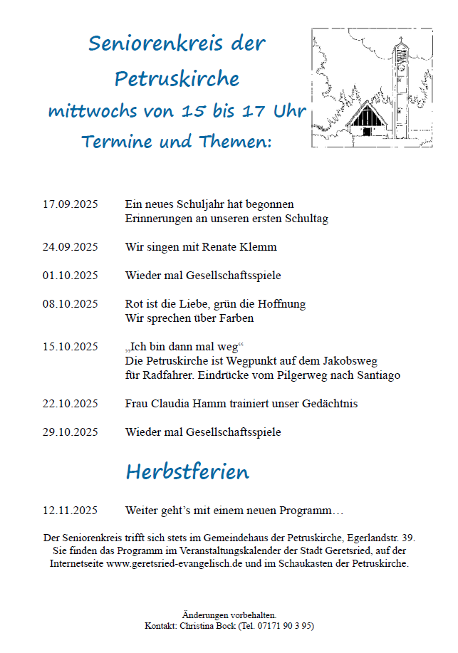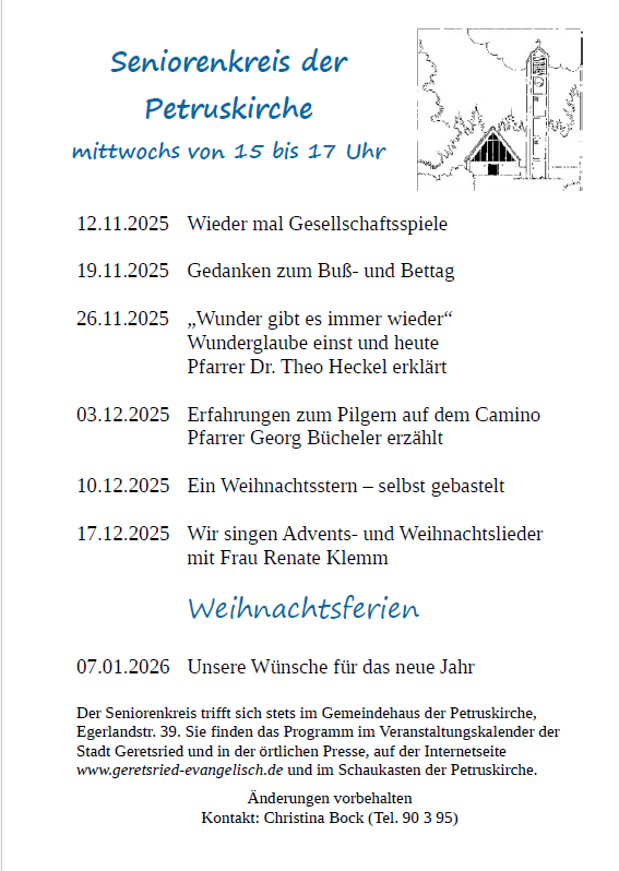 Herzliche Einladung zum Seniorenkreis der Petrusgemeinde.